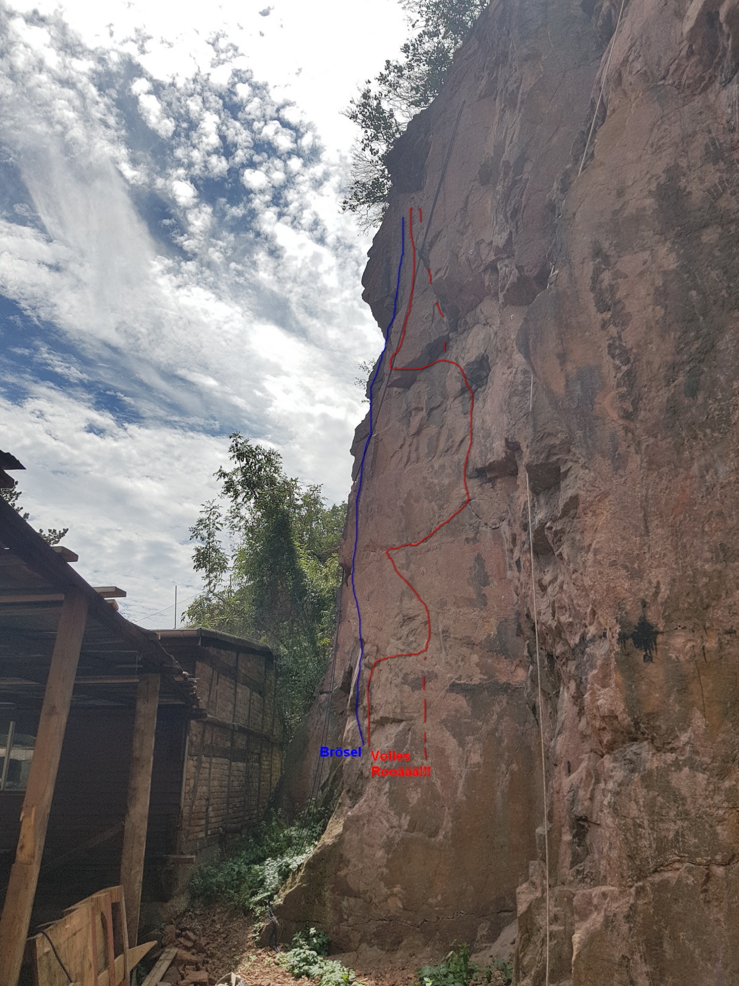 Die Route rechts von Volles Rooää ist so ca. VIIIa / 7-, hat aber noch ein Bendel, da sie noch geputzt werden muss.